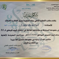 .( شكر وتقدير ( قسم المرحلة الابتدائية